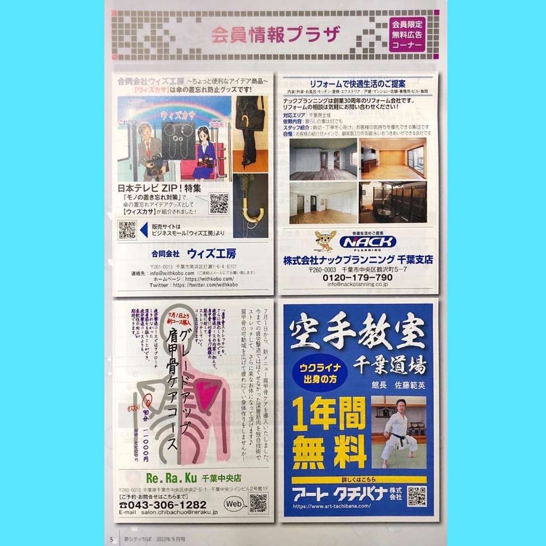 千葉商工会議所 会報「夢シティちば」9月号5ページの「会員情報プラザ」にナックプランニング 千葉支店の広告が掲載されました!ぜひ、ご覧ください!