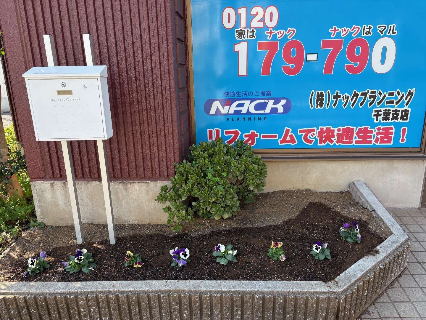 ナックプランニング千葉支店では、季節を楽しむお花を事務所前の花壇に植えています。