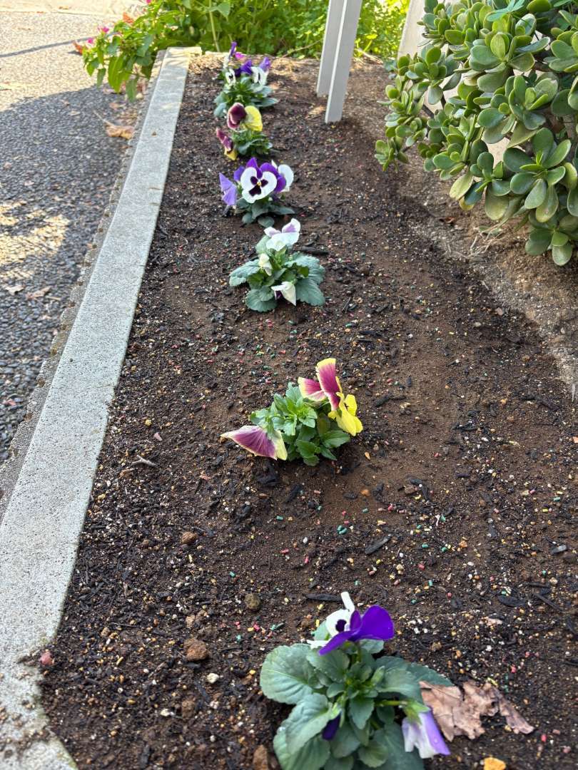 寒さに強いパンジーが殺風景になりがちな秋冬の花壇を彩ってくれていますね。