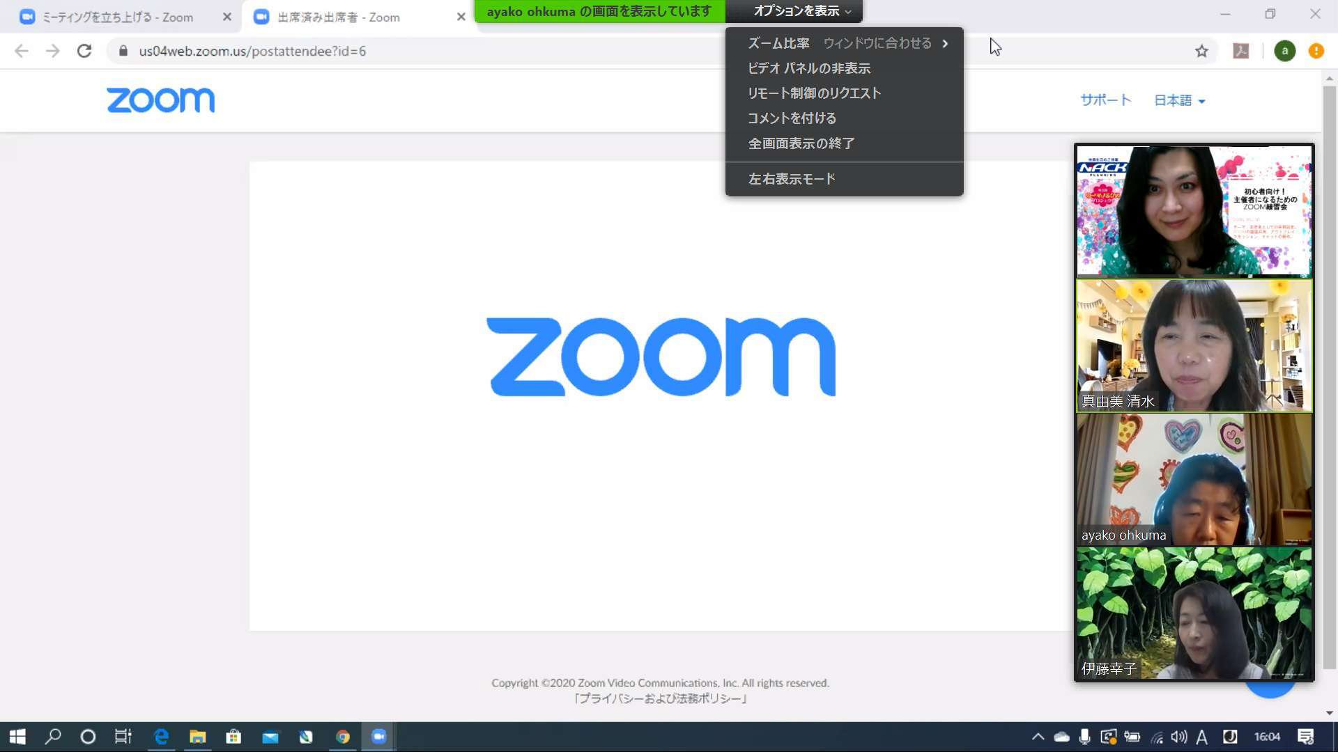 テーマ:主催者としての事前設定。zoomの画面共有、アウトブレイクセッション、チャットの操作。