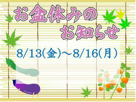 お盆休み期間:8月13日(金曜)~8月16日(月曜)