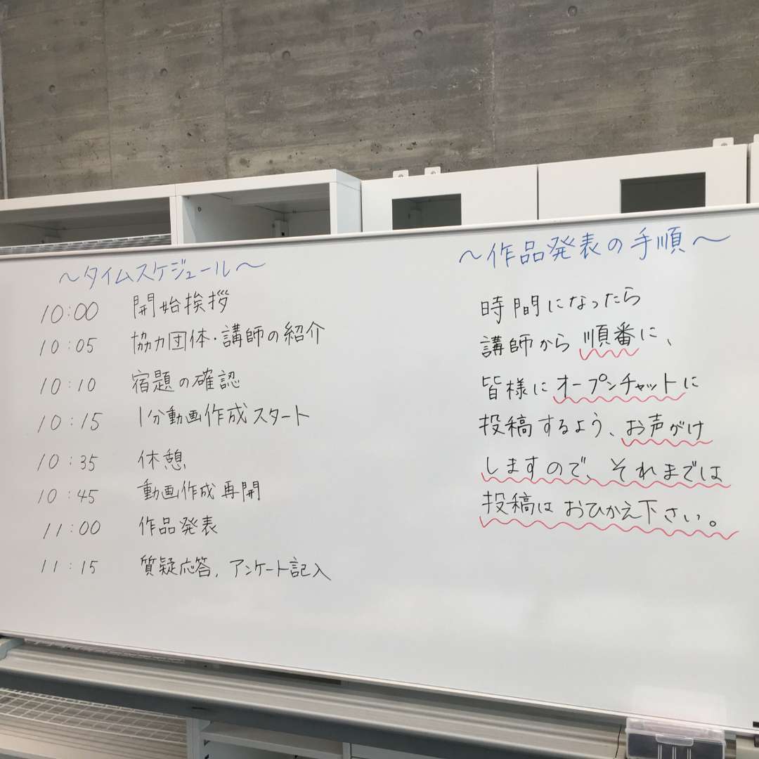 第2回目は、参加者の皆様に撮影してきていただいた動画を1分動画に編集していただきました。