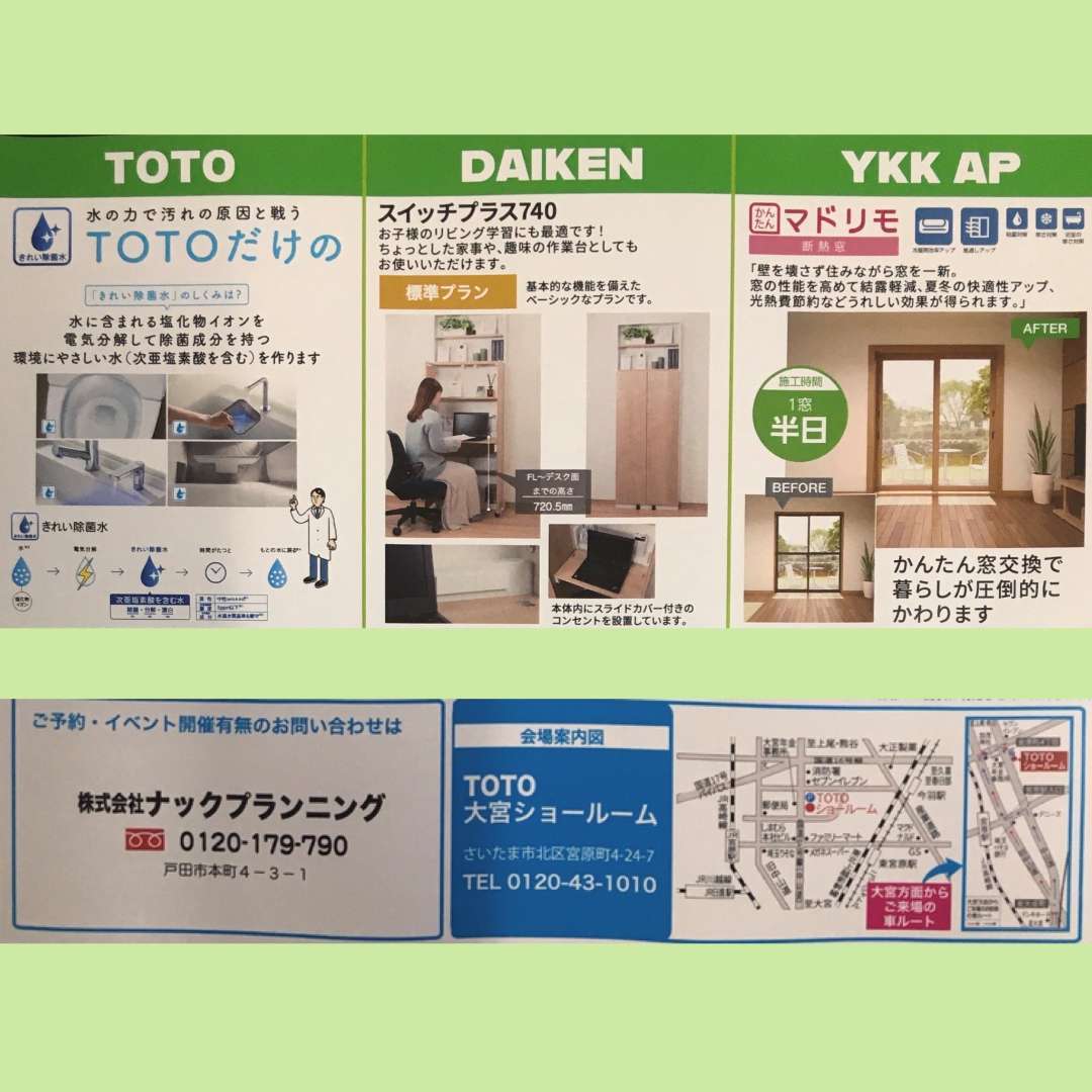 TOTO大宮ショールームで、開催される「お客様感謝祭」のご予約をナックプランニングで受付中です。(0120-179-790)
