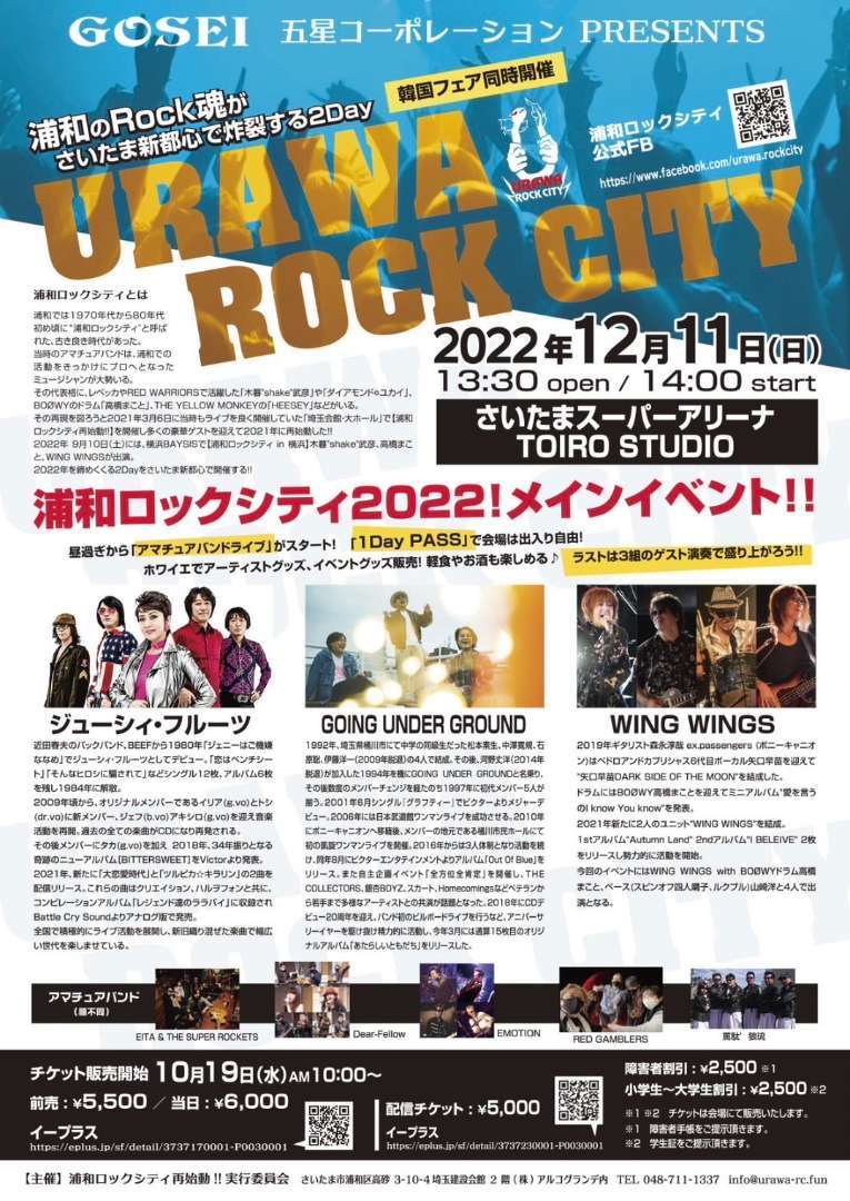 その再現を図ろうと2021年3月6日に当時もライブを良く開催していた「埼玉会館・大ホール」で【浦和ロックシティ再始動!!】を開催し多くの豪華ゲストを迎えて2021年に再始動した!!