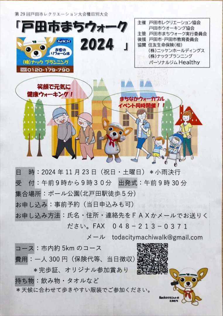11月23日(土)に開催された、「戸田市まちウォーク2024(主催:戸田市レクリエーション協会・戸田市ウォーキング協会)」にナックプランニングのとめきちが参加しました!