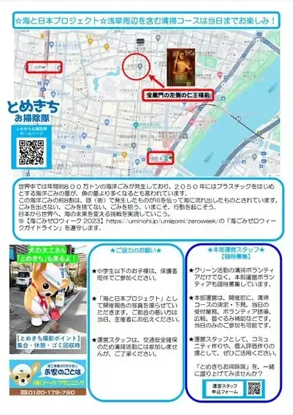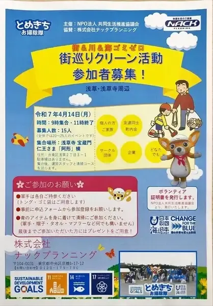 【募集】4/14 (月)「浅草寺周辺☆街&川&海ゴミゼロ」清掃ボランティア募集(とめきちお掃除隊)