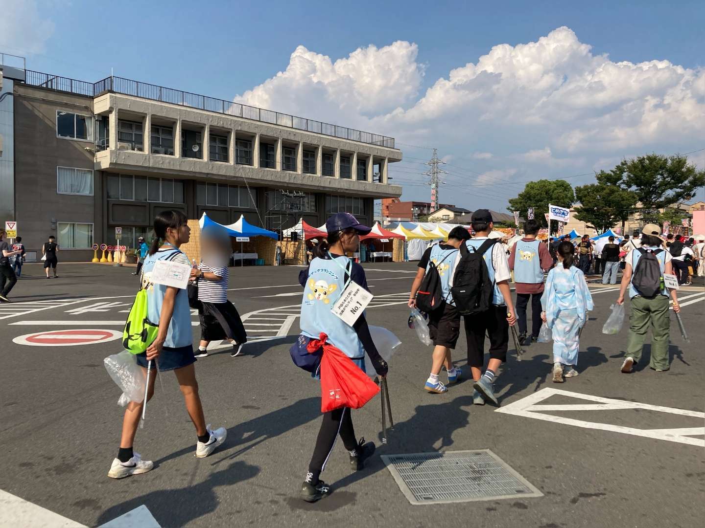 清掃ボランティアを当日募集し、総勢63名で安全で綺麗な会場で皆様にお祭りを楽しんでいただけるように会場のごみ拾いを行いました。