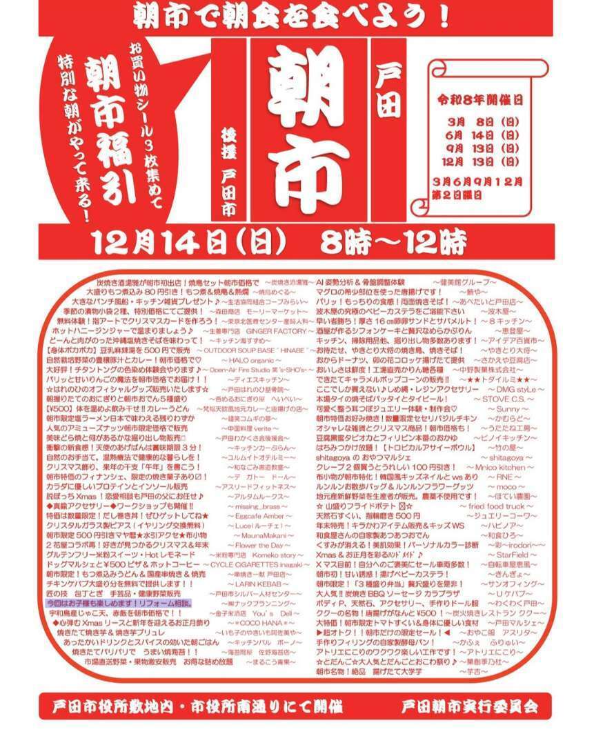 12月14日(日)に開催される戸田朝市に今回も出展することが決まりました。