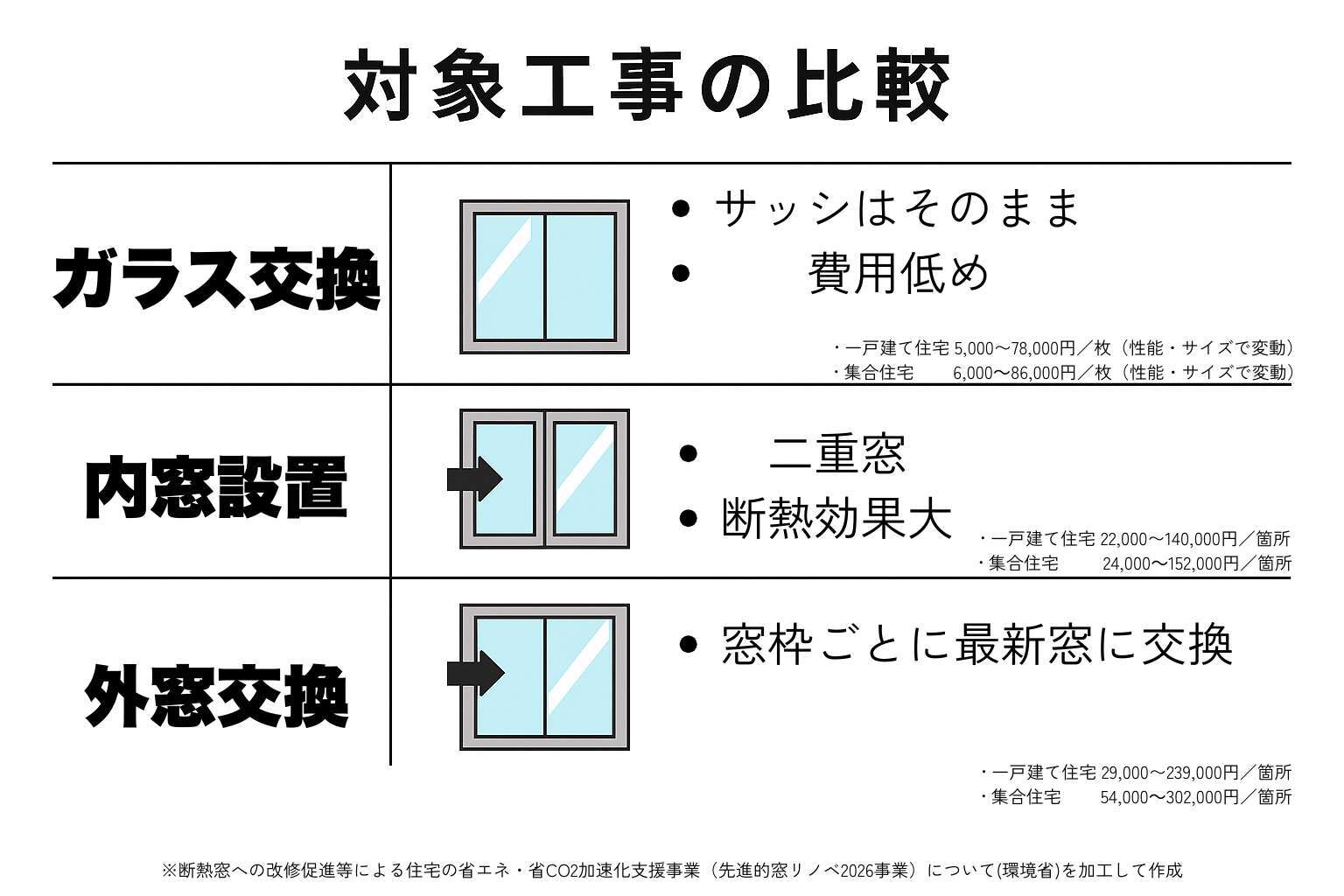 ※断熱窓への改修促進等による住宅の省エネ・省CO2加速化支援事業(先進的窓リノベ2026事業)についてより引用