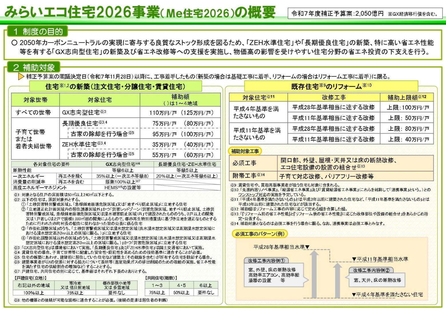 脱炭素志向型住宅の導入支援事業(みらいエコ住宅2026事業)についてより引用