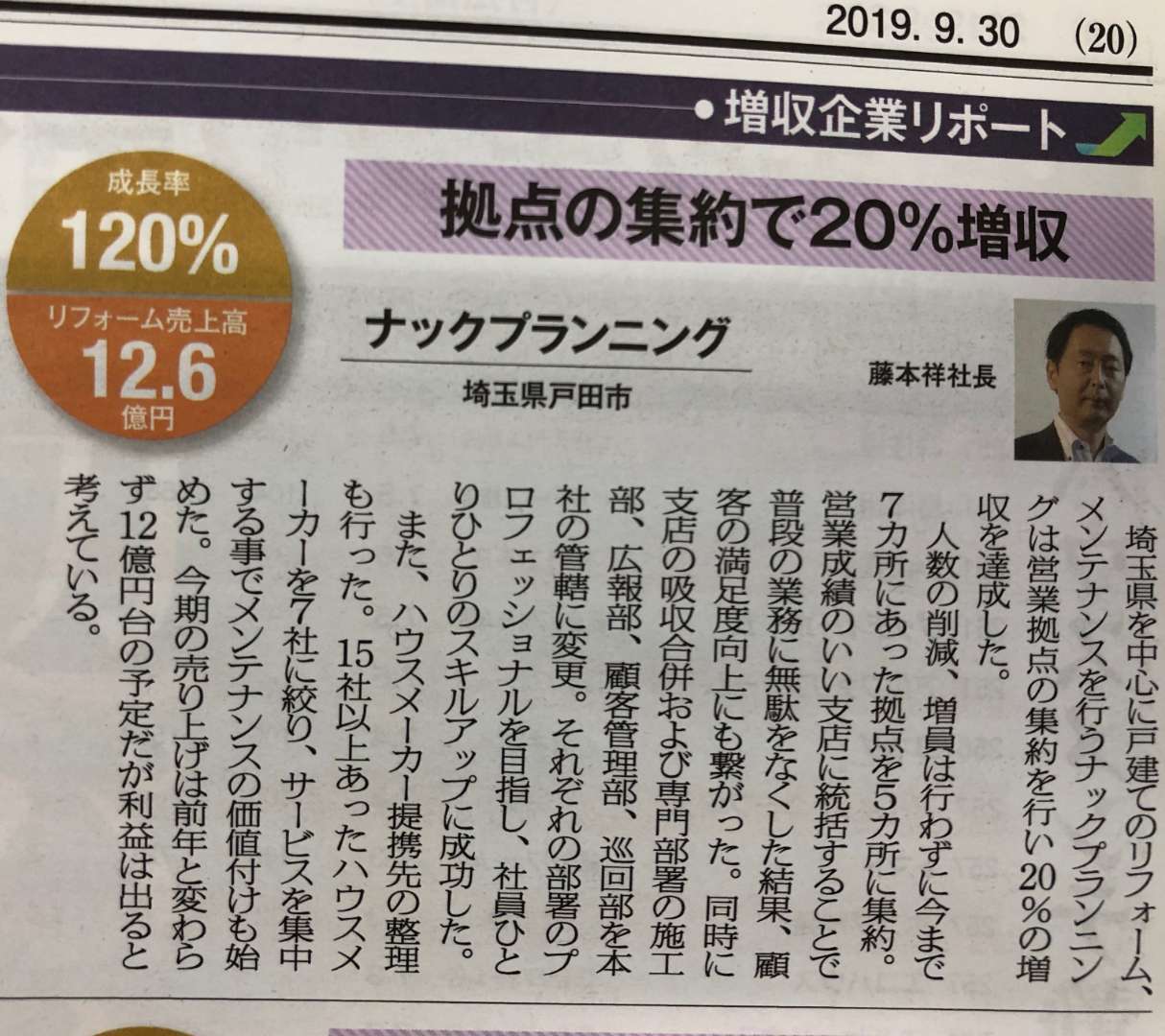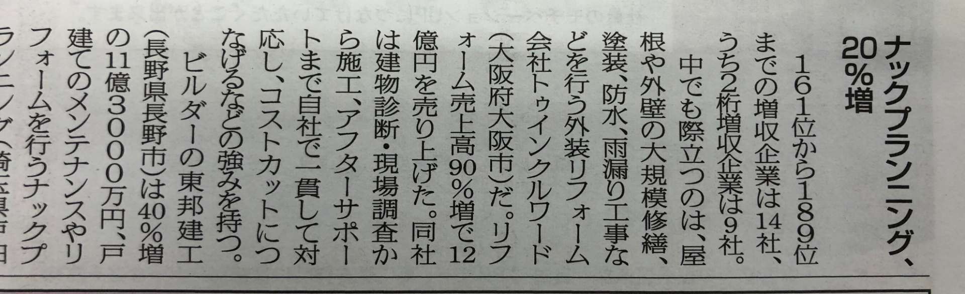 ナックプランニングは120%アップ172位で記事にしていただきました!!ハウスメーカーリフォーム会社が上位にいる中のこの順位は満足しています。