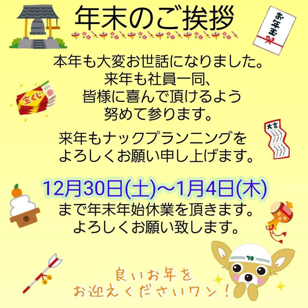 年末年始の休業期間:12月30日(土曜日)~1月4日(木曜日)