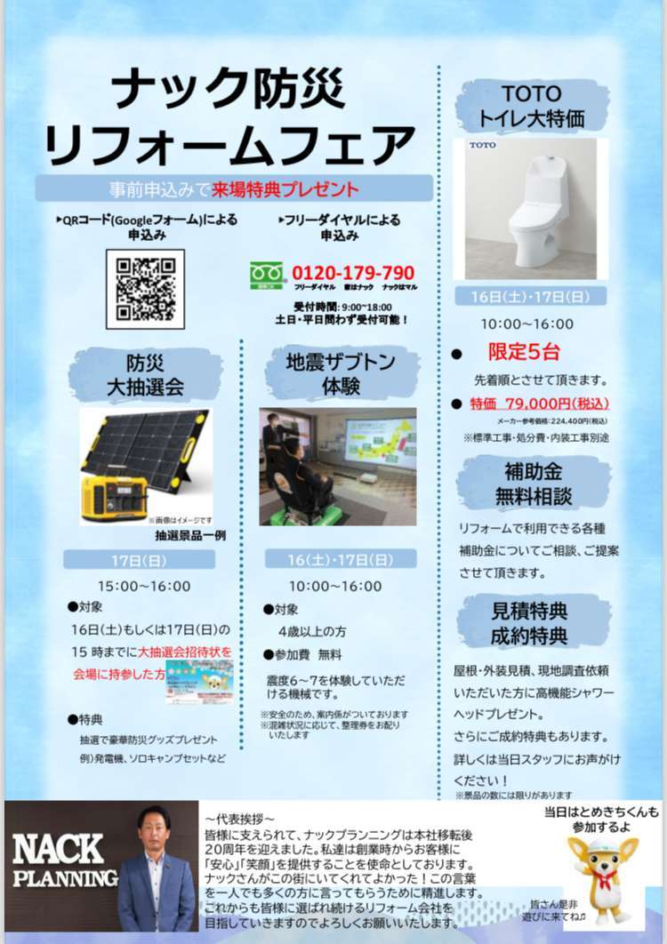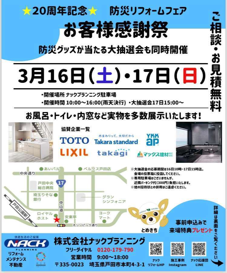 20周年記念 お客様感謝祭 防災リフォームフェアを開催します。
