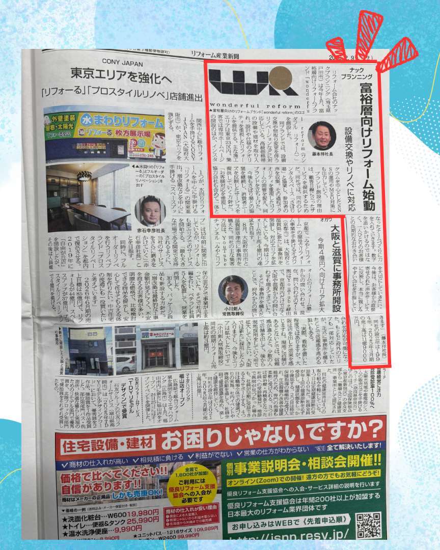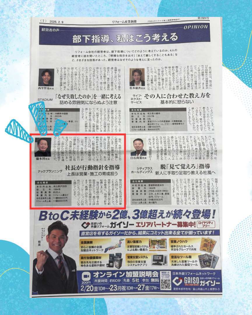2月9日発行のリフォーム産業新聞にナックプランニングが掲載されております。