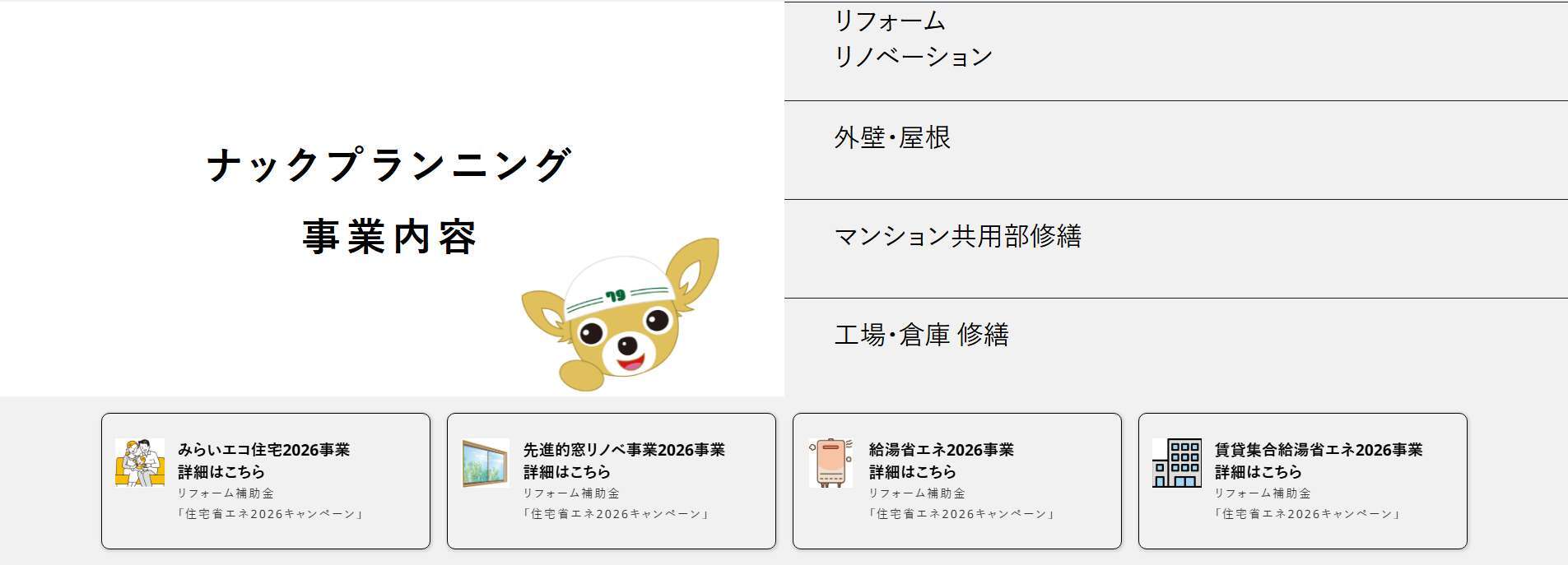 ホームページをリニューアルいたしました。 今後、施工事例やコラムをアップして参ります。