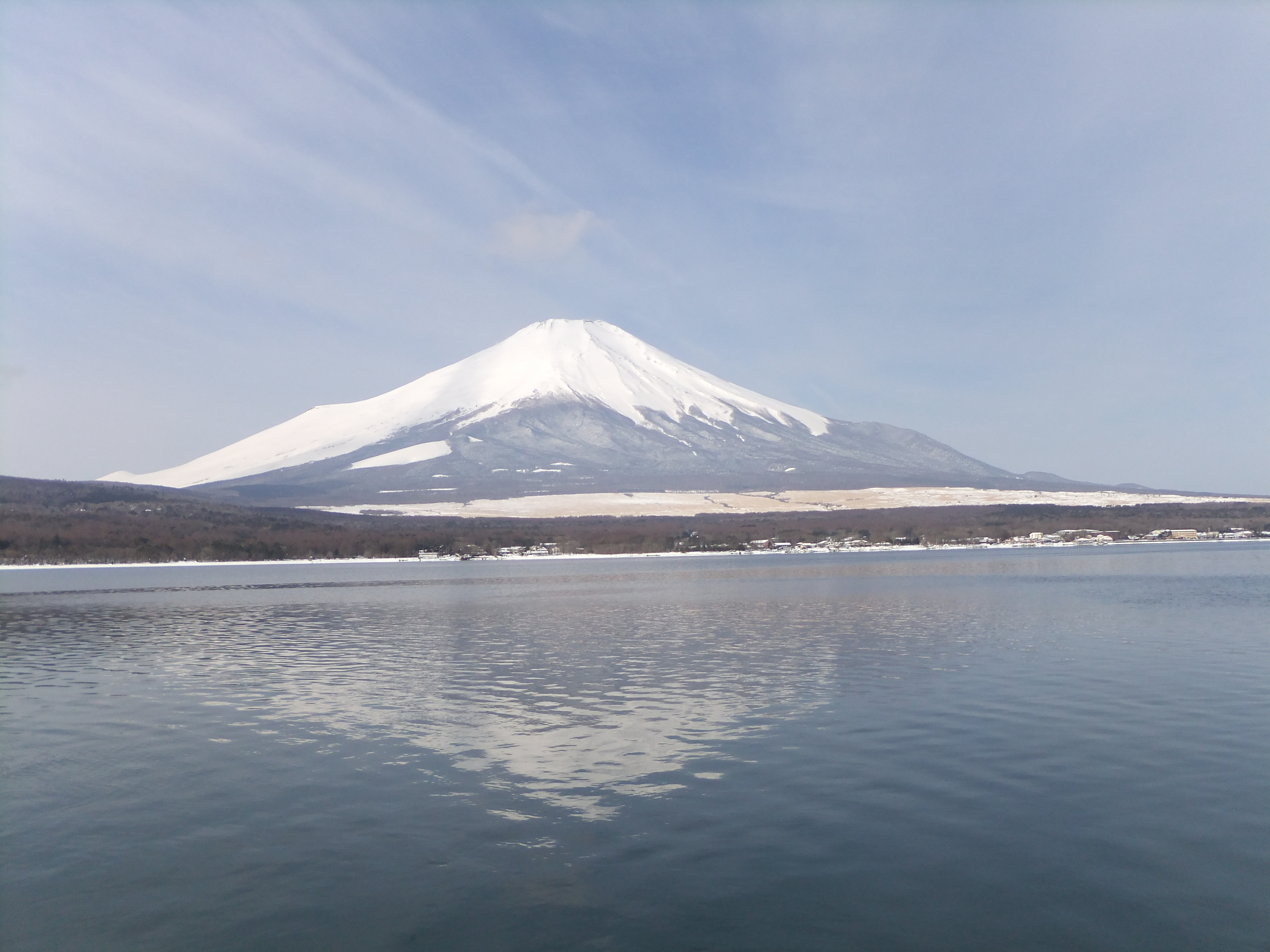 水曜日の休暇を利用して、社員で河口湖まで行ってまいりました。 いい天気!青い空。薄い雲が美しい。気持ちいい風。 富士山もきれいです。