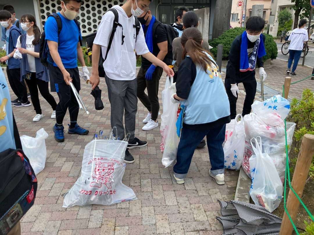 感染対策は消毒・検温・感染アプリなどを徹底し、分散しながら清掃を行いました。