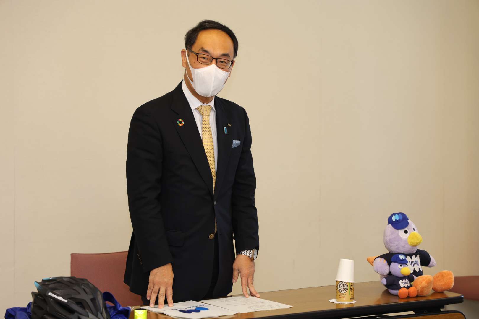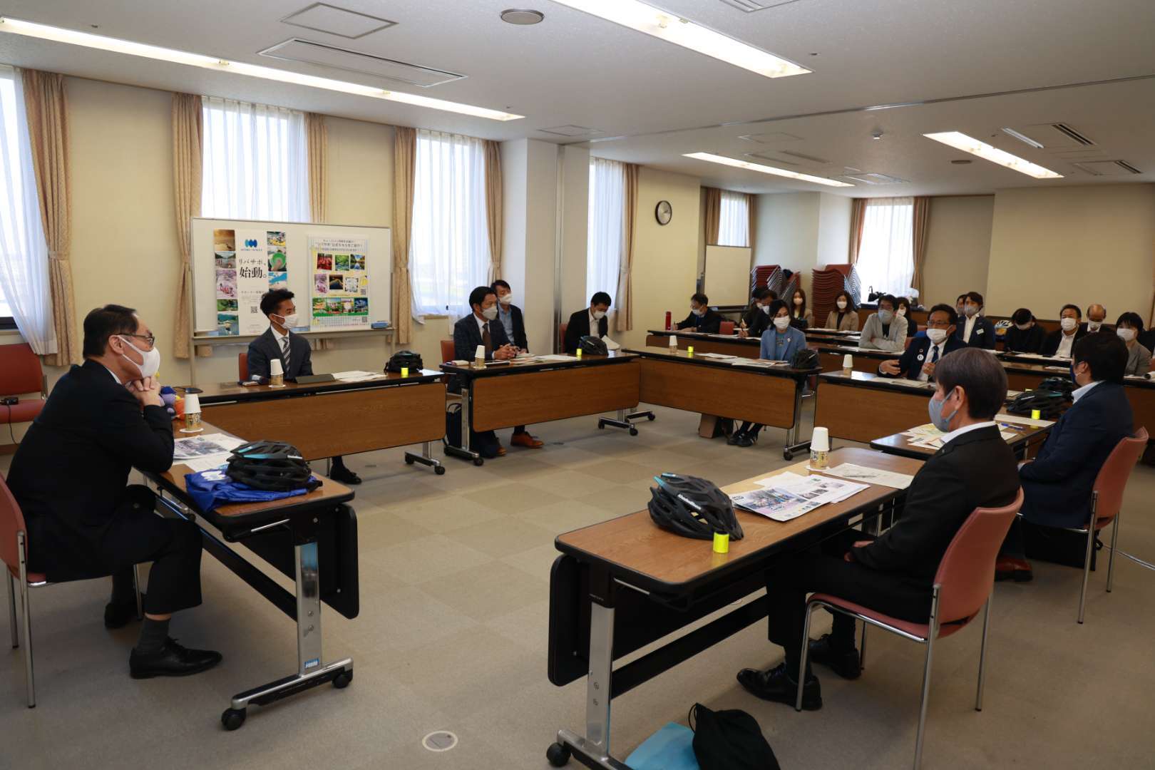 参加企業の、「リバチャリ」を立ち上げた「ホダカ株式会社」、「プロギング(ジョギングをしながらゴミを拾う活動)」を継続的に実施されている「古郡建設株式会社」、県との包括連携協定により県政に幅広く協力されている「明治安田生命保険相互会社」の皆様と一緒に、ナックプランニングが取り組む「とめきちお掃除隊」の視点から、官民連携の課題や今後の展望について、大野県知事とお話する機会をいただきました。