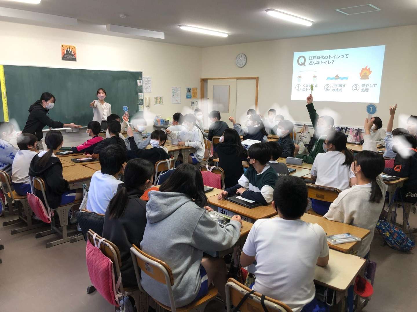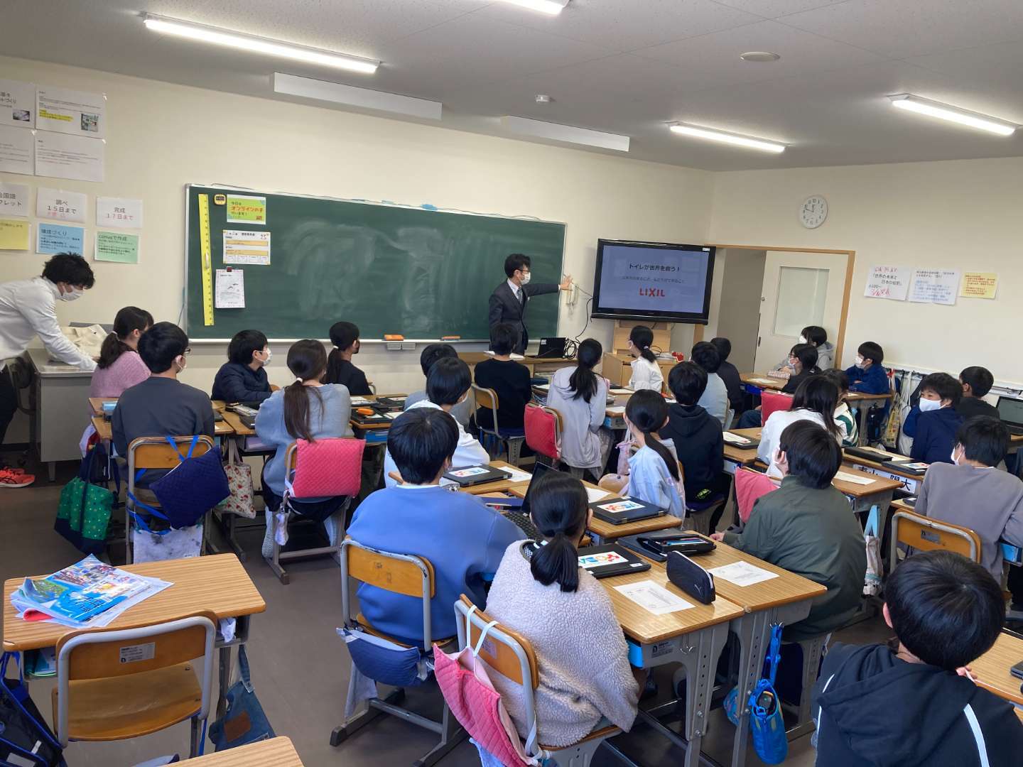 2/28(火曜)、ナックプランニングは、戸田市立「戸田第一小学校」の6年生の4クラスに、住宅設備メーカーLIXIL様とパートナーとしてご一緒し、埼玉県で初開催となる「トイレが世界を救う!」SDGs出前授業を実施しました。