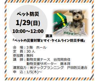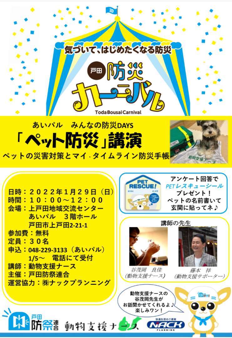 1/29にナックプランニングが「戸田防祭連合」のメンバーとして「ペット防災」の講演会を運営協力します。