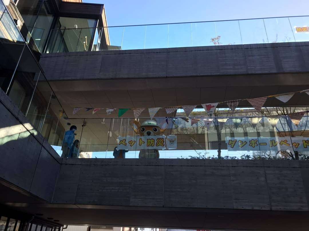 展示場所のあいパル2階回遊デッキでは、折り紙紙皿のワークショップのご案内とともに、ペット同行避難についてや、日頃の備えについて、ご紹介しました。
