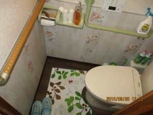 トイレの床や壁も模様替え。 床材と花柄の壁材は 汚れてもタワシでごしごし水洗いできる素材にしました。 こちらのリフォームは 総費用30万円。 段差の解消と手すりの取付で 横浜市より18万円の助成金を頂きました。 担当は神奈川支店 海老原です。
