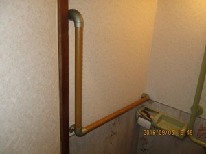タオルバーの付いていた壁を クロスに貼替て手すりを取り付け。 トイレ