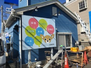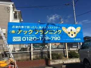 成田支店看板工事が完了しました。 成田はリフォーム会社は多いですが、メンテナンスに関しては一番を目指し、地元密着を心がけます。 日赤病院の通りで味の民芸さん横、車の通りも多く目立ちますよ