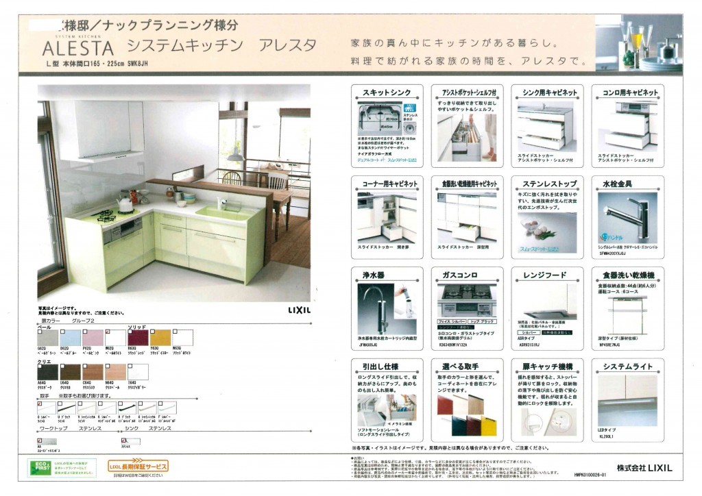 LIXIL ALESTA 収納や小物類などオプションが色々選べ とっても使い勝手の良いキッチンです。