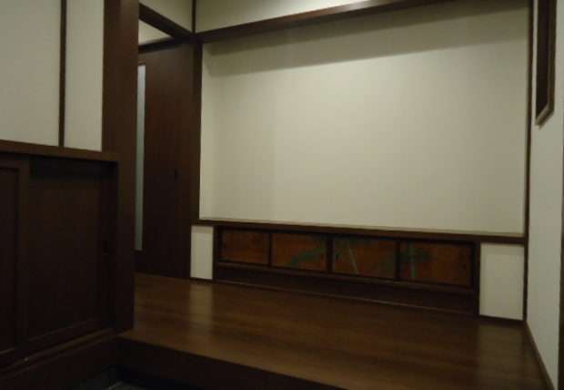 前回のリフォームで、和室を洋室にした際に、床の間にあった「絵が素敵な吊り戸棚」を、お客様が大切に保管されていました。